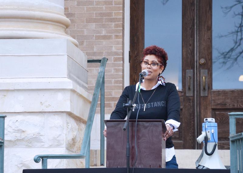 “The sentiment behind this theme seeks to highlight the ways in which Black people have used various forms of resistance to tirelessly struggle against oppression and White supremacy,” DHA Secretary Jonafa Banbury told the crowd gathered at the Hays County Historic Courthouse. “Black resistance can be seen throughout the Civil Rights Movement where Dr. King featured prominently as a leader in the Black community. Other examples include leaders of slave rebellions, abolitionists, Black educators, Black faith institutions, HBCUs, and members of the Black arts movement.”