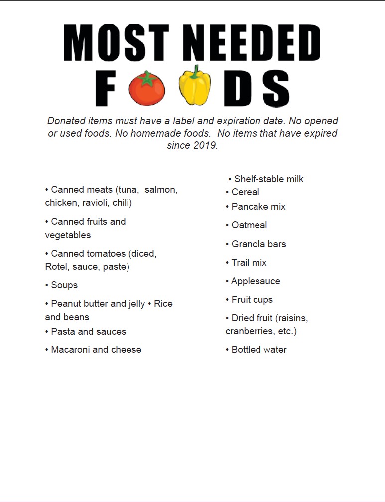 The food donation drop off is from 9 am-11:30 am at Eddie Durham Park