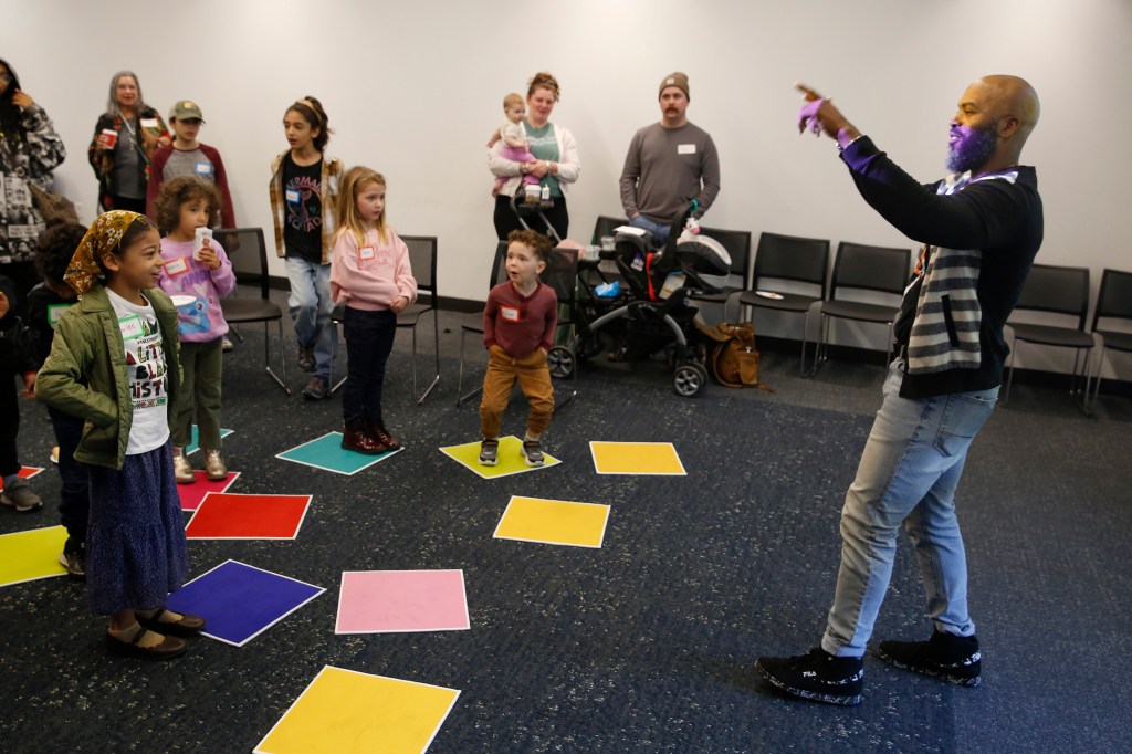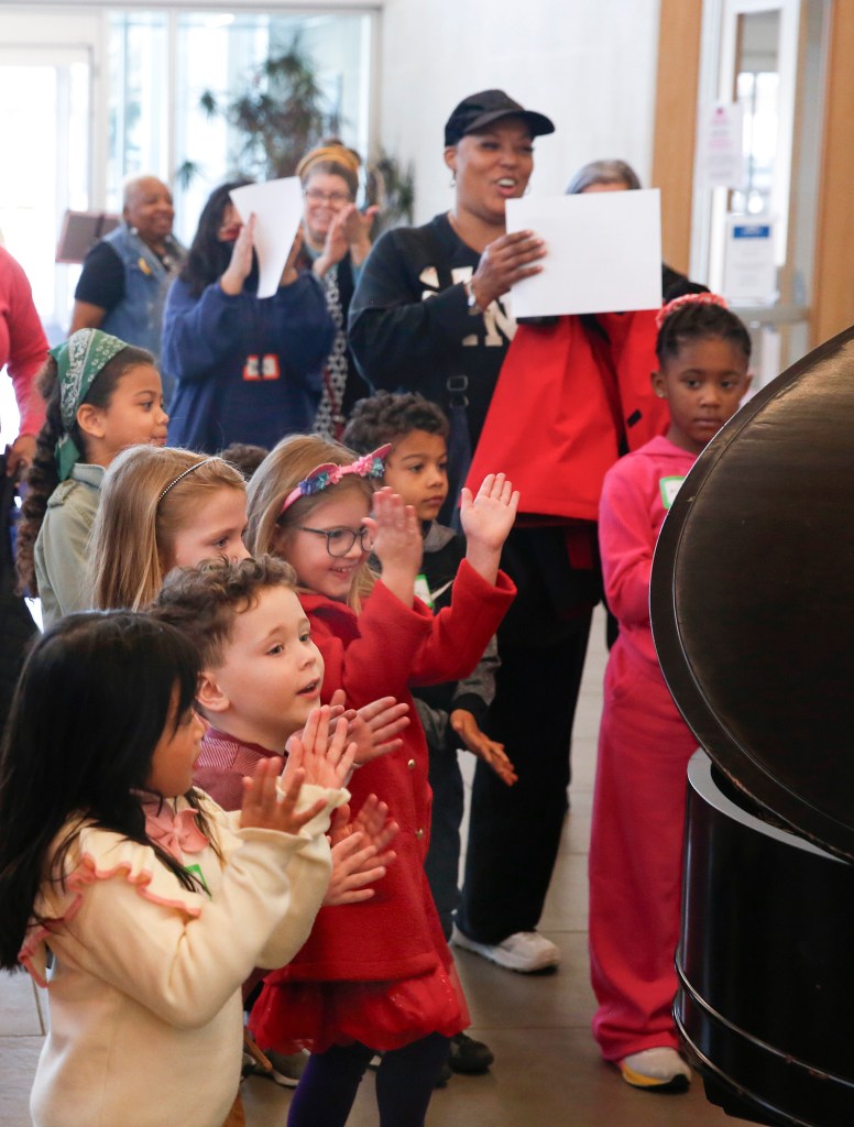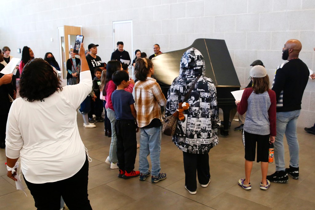 The Kids Event at the library featured educational crafts and workshops as well as a sing-along version of “Lift Every Voice,” when participants and volunteers surrounded a piano in the library lobby. At the end of the event, the kids held a mini-walk, from the library to the San Marcos Activity Center, to show off the signs they had made during a workshop.